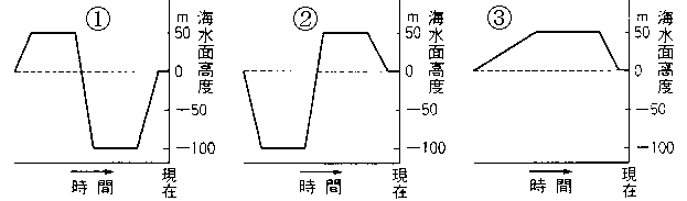 海水面高度の変動をもたらす要因として、最も重要なものを述べよ。また、海水面高度の変化を示す図として、最も適当なものを、以下の@〜Bのうちからひとつ選べ。