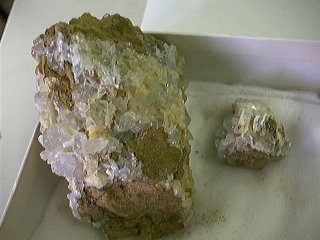 重晶石が晶出している脈と母岩。(寺阪標本)