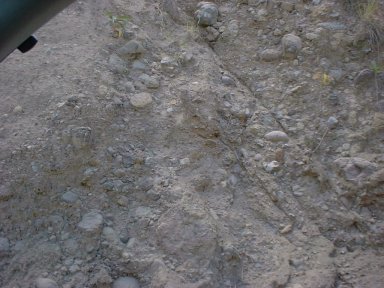 礫種は火山岩を主として、現在の河床堆積物とほぼ共通のようだ。
