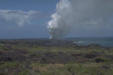 キラウエアのプウオオ火口から流出する溶岩が、海中に流れ込んでいる。
