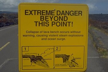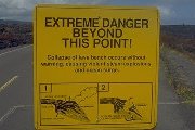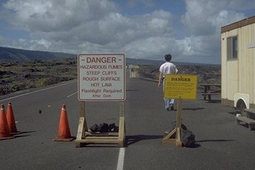 溶岩トンネルを踏み抜いたり、崩壊して落下する危険を説明している。しかし、溶岩流のすぐそばに寄れることがすごい。