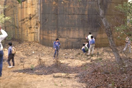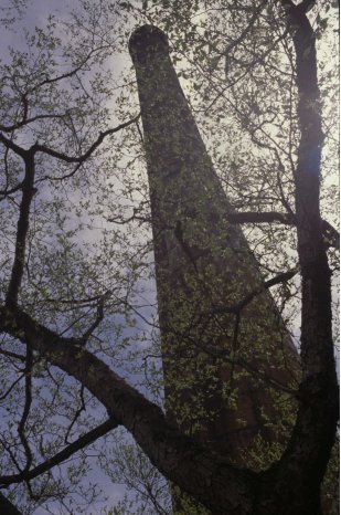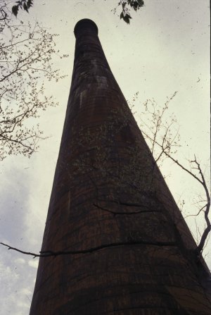 高校時代の写真を保存・整理していて、1984年5月、水戸一高39組の全日HR(遠足のこと)で神峰山から神峰公園へのハイキングをしたときの写真の中に、かつての大煙突の姿を記録した写真が出てきました。