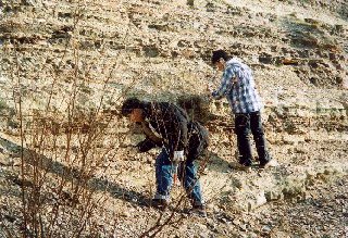 露頭にはりついて化石を探す。