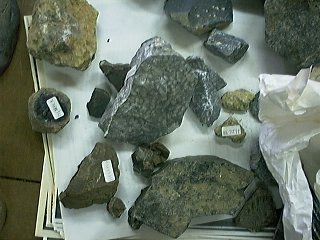 地文研部室から出てきた、累代の標本。フズリナ石灰岩など。