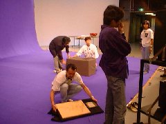 スタジオで使う標本。 うちあわせ。 標本類のクロマキー撮影。 カメラを移動して撮影している。 大事な標本をしまうPD杉山さん。