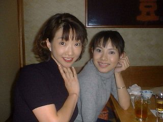 お疲れさん会。松井菜桜子さんと上原さくらさん。