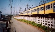 西武拝島線武蔵砂川−玉川上水駅間。西武線の土手の高さが垂直変位量に相当する。立川面上なので、これが約3万年間の累積変位量に相当する。