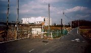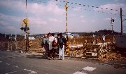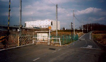 正面の雑木林に至る坂道に断層の垂直変位が現れている。画面左で立川断層は八高線を横切るが、そこは切り通しになっている。 同じ踏切にて。遠くに狭山丘陵を望む。