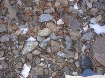 各種スカルン鉱物、石灰岩、鉱石鉱物などがズリにみられる。