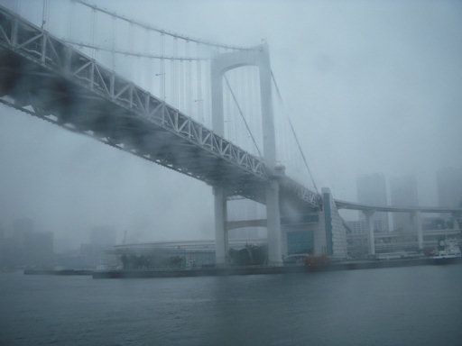 雪の竹芝桟橋を出港。レインボーブリッジ通過。