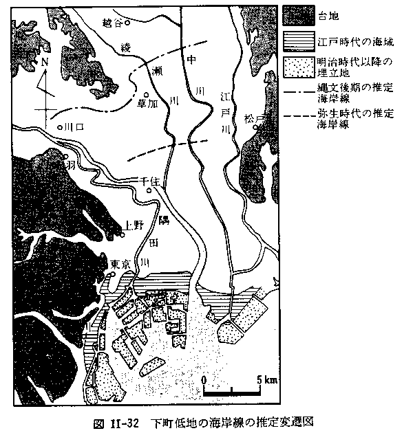 2)沖積低地の形成…縄文海進、近年の自然の東京湾埋め立て