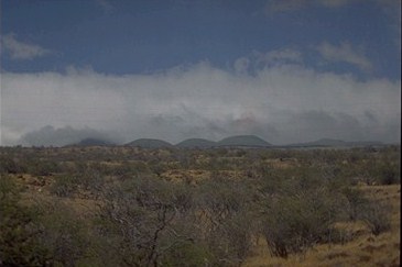 Maui島?の山の周囲に沸き立つ雲の様子。