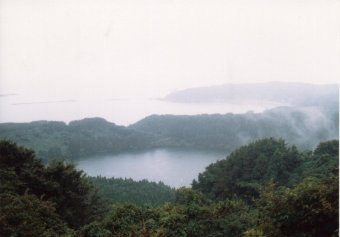 同じくマールの二の目潟。遠方は戸賀湾。戸賀湾もマールであるといわれる。このほか、