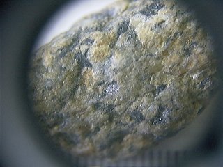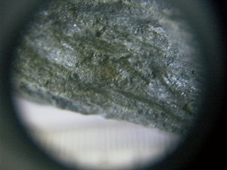 拡大したもの。斜長石の多い部分と角閃石の多い部分が、色の濃淡の縞をつくっている。
