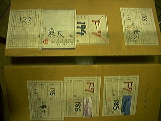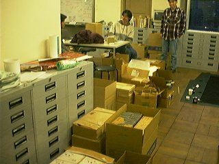 地質部のみなさんの協力で、時計台下からNHK「地球大紀行展」(1987)に貸し出したあと、梱包・返送されたままになっていた標本の大半と、ラベル、標本整理用の箱などを発掘し、自然科博に運び込みました。