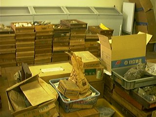 1号館4階から、いったん3階の展示室に移動した標本の山。