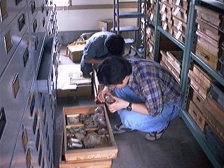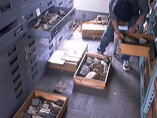 1号館4階の標本整理。地文研究会地質部のみなさんにご協力いただきました。
