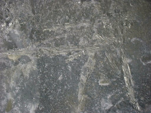 愛媛県新居浜市 雲母中の産状 kyanite-zoisite-muscovite schistの斑状変晶として産する。三波川帯中の東平岩体の一部。原岩はおそらく斜長岩質はんれい岩。