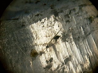 山梨県塩山市の水晶に伴うチタン鉱物。実体顕微鏡による拡大写真。(大谷標本)