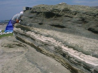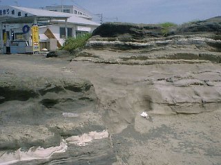 ここに断層があり、斜めに地層が接合している。