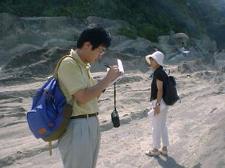 岩場を東へ移動。右が担当のNED鈴木千加志さん。左はこの番組の構成作家、笹本妙子さん。