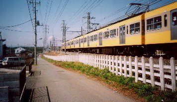 西武拝島線武蔵砂川−玉川上水駅間。西武線の土手の高さが垂直変位量に相当する。立川面上なので、これが約3万年間の累積変位量に相当する。