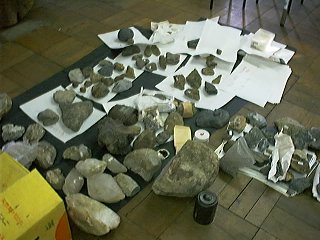 地文研部室から出てきた、累代の標本。フズリナ石灰岩など。