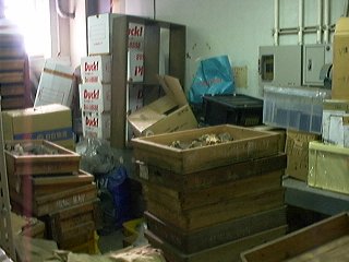 3号館地下の標本の山。歴代の教官の置いていったサンプルなど、ラベルや番号のついているものは、自然科博で引き取る予定。