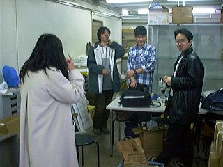 引っ越し作業に立ち会って、手伝ってくれた地文研地質部諸氏。手前は教官の清野さん。